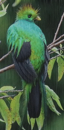 quetzal in the rain