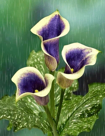 colored calla in the rain
