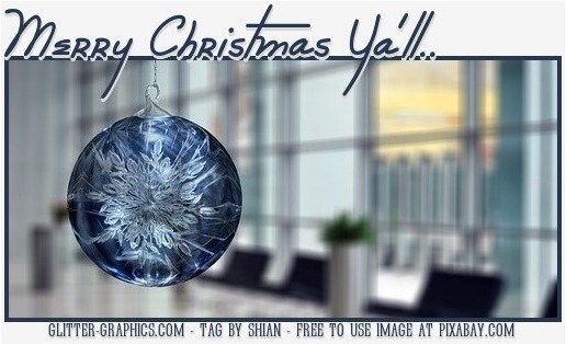 | This image was uploaded by shian. Blue Ornament with text saying.. Merry Christmas Ya'll ➡ thank you for your votes & comments, hugs.. Shii ❥ ➡ free image at pixabay, see link below ⬇ https://pixabay.com/photos/christmas-star-ball-office-2887333/ |