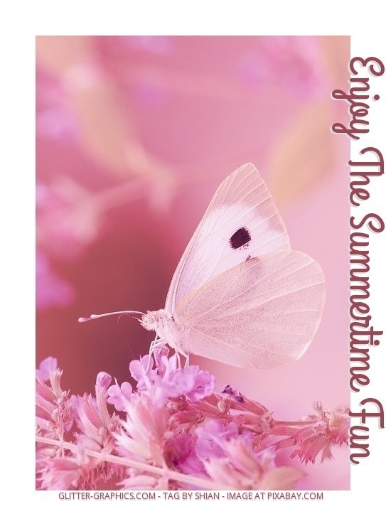 | This image was uploaded by shian. ▫▫FEATURED GRAPHIC Lovely pink flowers with butterfly on them.. text saying.. ENJOY THE SUMMERTIME FUN 🌸🍃 ➡ thank you for your votes & comments, hugs.. Shii ❥ ➡ free image at pixabay. See link below ⬇ https://pixabay.com/en/animal-butterfly-white-566891/ |