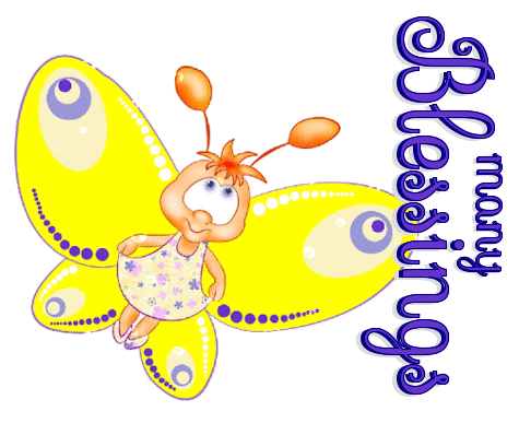 ANIMATED BUBBLES ON BUTTERFLY SAYING.. MANY BLESSINGS