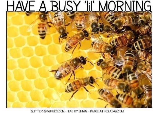 | This image was uploaded by shian. ▫▫FEATURED GRAPHIC Bees on Honeycomb Saying..HAVE A BUSY 'lil' MORNING 🐝 ➡ thank you for your votes & comments.. Hugs, Shii 🌸🍃 ➡ image link below: ↘ https://pixabay.com/en/honey-bees-beehive-honey-bees-326337/ |