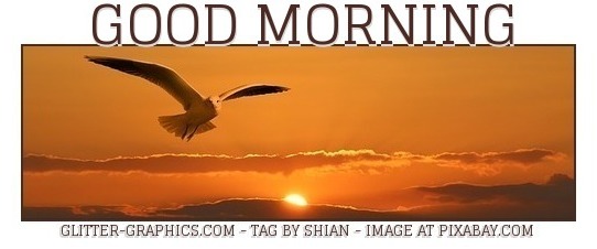 | This image was uploaded by shian. ▫▫FEATURED GRAPHIC beautiful sunrise with gull flying and with text saying.. GOOD MORNING ➡ thank you for your votes & comments, Hugs.. Shii 🌸🍃 ➡ free image at pixabay,see link below⬇ https://pixabay.com/en/gull-bird-flying-orange-sunset-1090835/ |