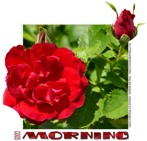 | This image was uploaded by shian. Lovely Ree Rose and Rosebud with twxt saying. GOOD MORNING 🌹🍃 ➡ thank you for your votes & comments. Hugs, Shii ❥ ➡ free image at pixabay, see link below ⬇ https://pixabay.com/en/red-roses-bud-frame-2368311/ |