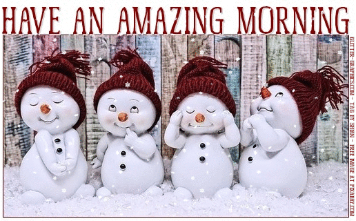 | This image was uploaded by shian. Adorable Snowman gtoup in the snow (animated) saying.. HAVE AN AMAZING MORNING ➡ thank you for your votes & comments, Hugs.. Shii ❥ ➡ free image at pixabay See link below ⬇ https://pixabay.com/en/snowman-figure-cute-winter-wintry-3886992/ |