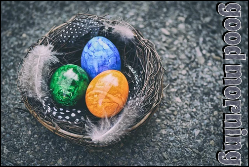 | This image was uploaded by shian. •a basket of marbled eggs.. text says.. good morning •THANK YOU FOR YOUR VITES & COMMENTS, HUGS.. SHII 💜 •image at link below.. https://pixabay.com/photos/easter-eggs-easter-nest-easter-5011031/ |